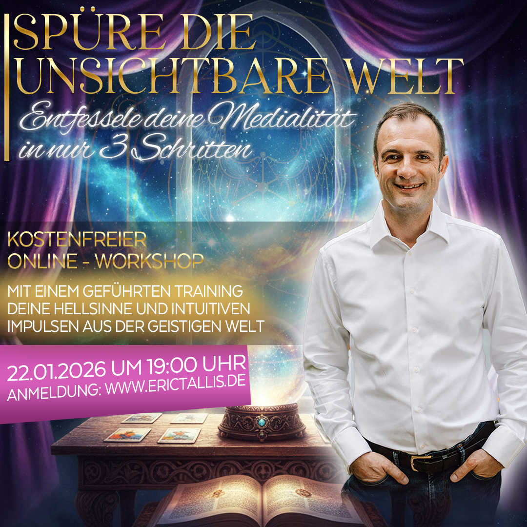 Willkommen bei der TALLIS AKADEMIE – Ihrer führenden Schule für Medialität, spirituelle Künste und persönliche Transformation. Entdecken Sie eine Welt voller Magie, Licht und unendlicher Möglichkeiten, um Ihre intuitiven und medialen Fähigkeiten zu entwickeln, zu vertiefen und zu meistern. Unter der Leitung von Eric Tallis, einem erfahrenen Medium und Botschafter der geistigen Welt mit über 30 Jahren Expertise, begleiten wir Sie auf Ihrer spirituellen Reise.